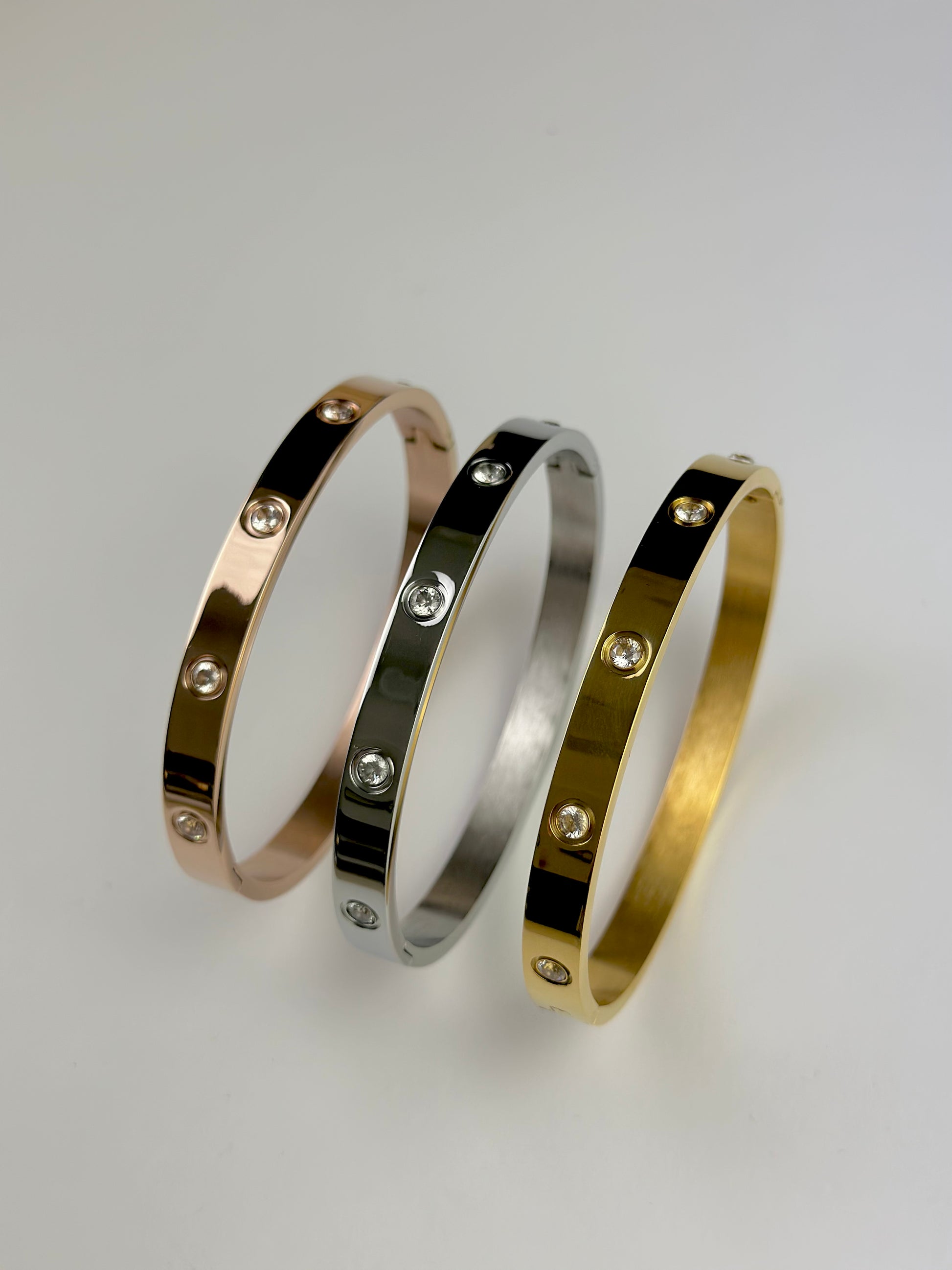 Channel your inner Goddess beauty with this fabulous and alluring gold plated made of titanium steel Aphrodite Bangle. The opulent and sparkling zirconia studs are looking stunningly perfect for your casual or party OOTD