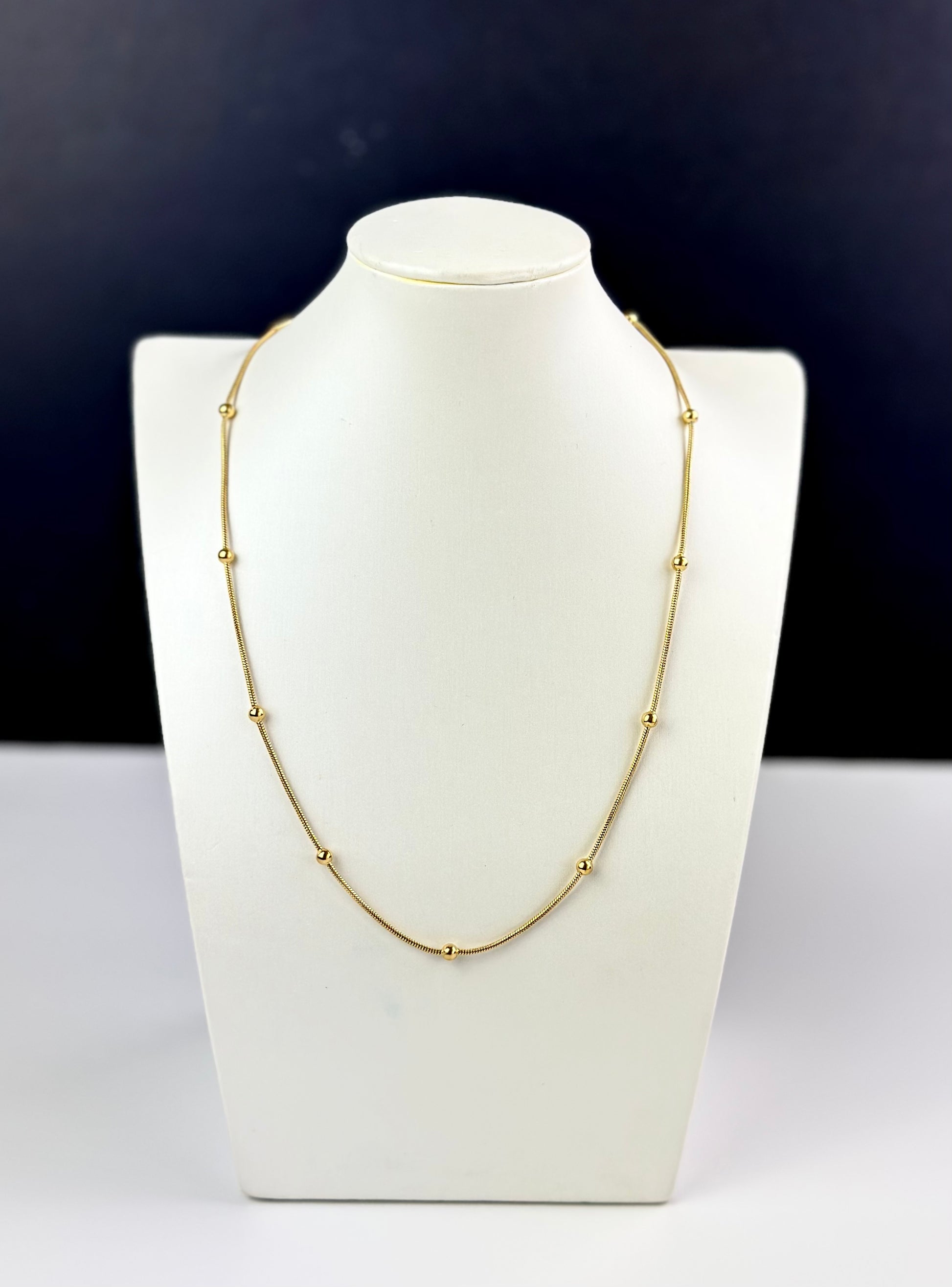 Bead necklace is a stylish and sophisticated piece of jewellery that combines delicate elements of gold. It is made of Titanium steel with 18k Gold plated. It is designed to add a touch of elegance and perfect to mix and match with other jewelleries too.