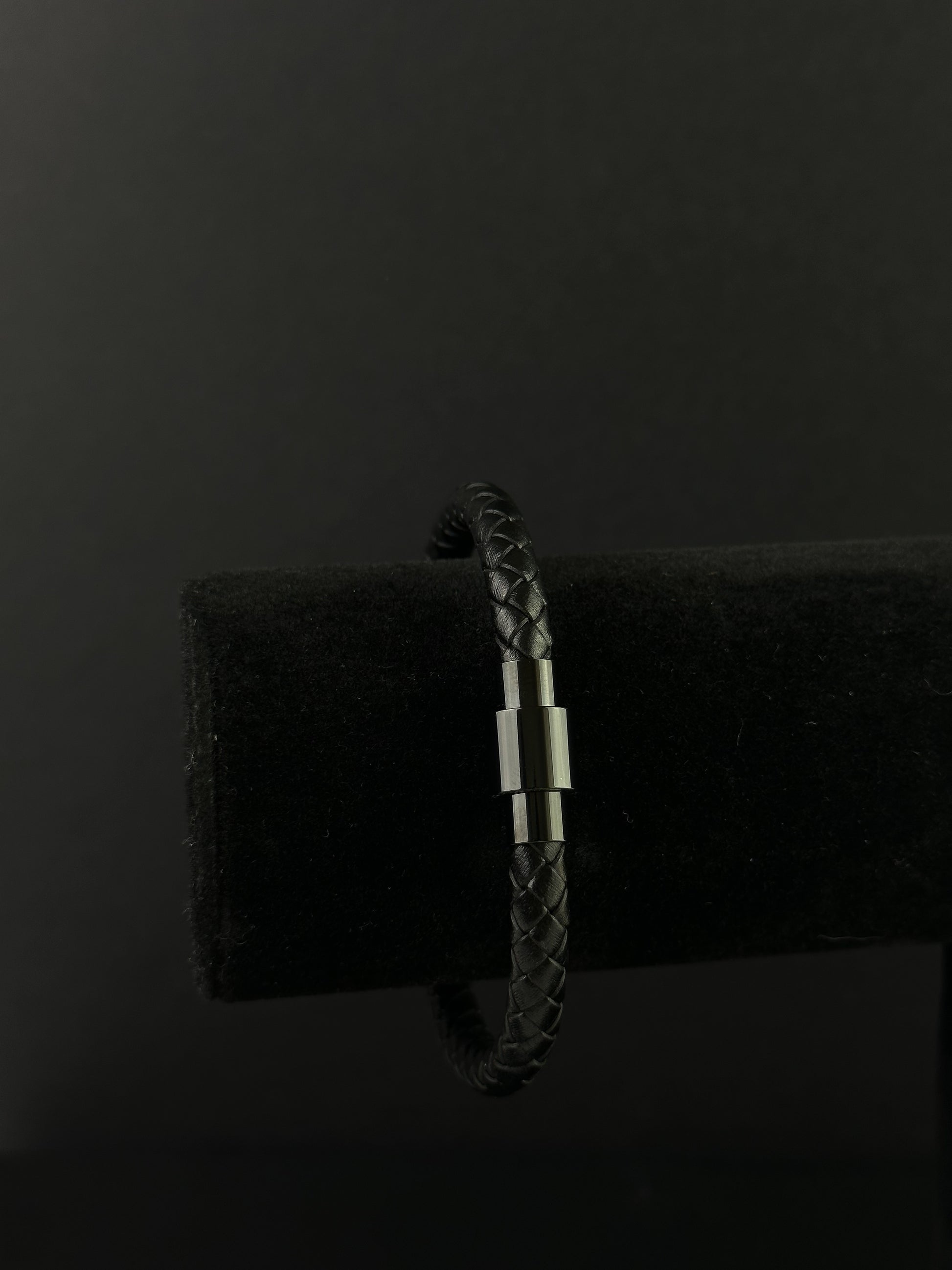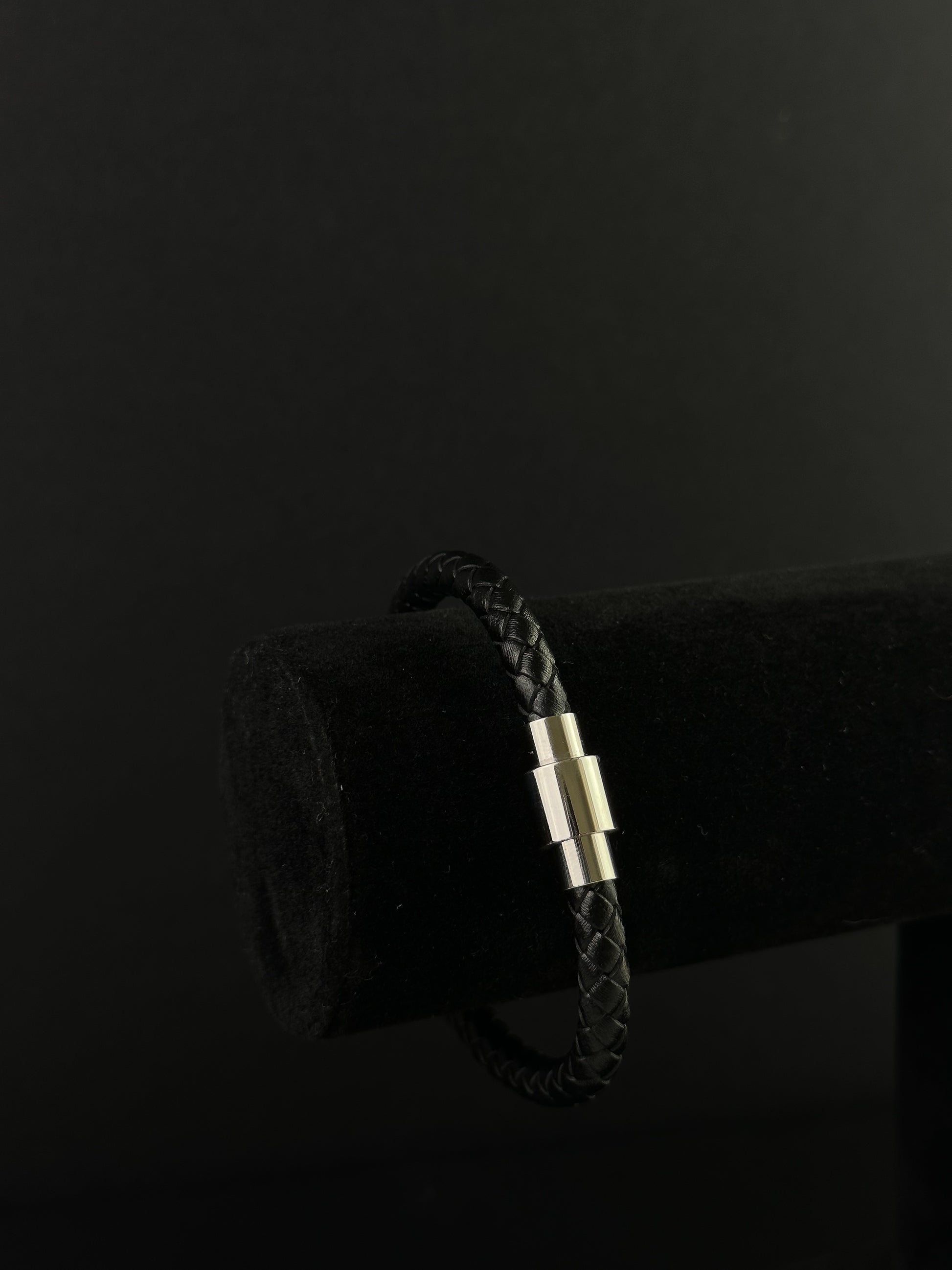 It’s easy to dress to impress when you accessorise your outfit with this striking masculine stainless steel with platinum plated punk round bracelet. It’s contoured and textured faux leather beautifully replicates snakeskin.