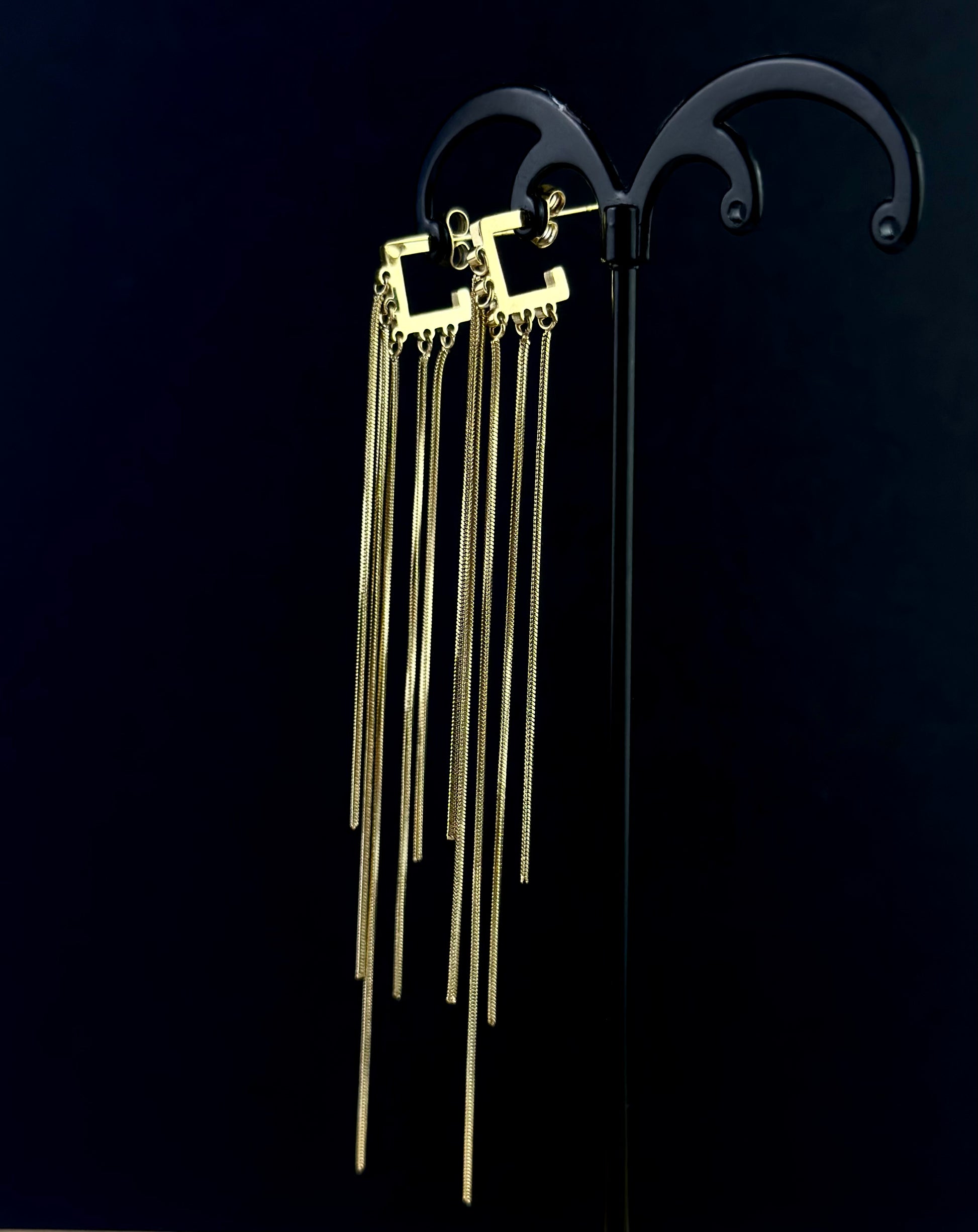 Channel your inner Hollywood starlet with these fabulous and dangling 18k gold plated titanium steel thread dangling earrings. The Stylish drop and waving style of this earrings are embellished with C style detail. Perfect to wear for some special or gala night.